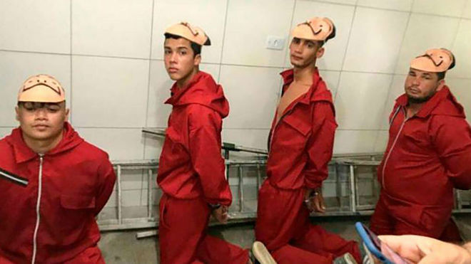 29 May, 2018 —Los detuvieron por intentar asaltar una prisión vestidos como los personajes de La casa de papel